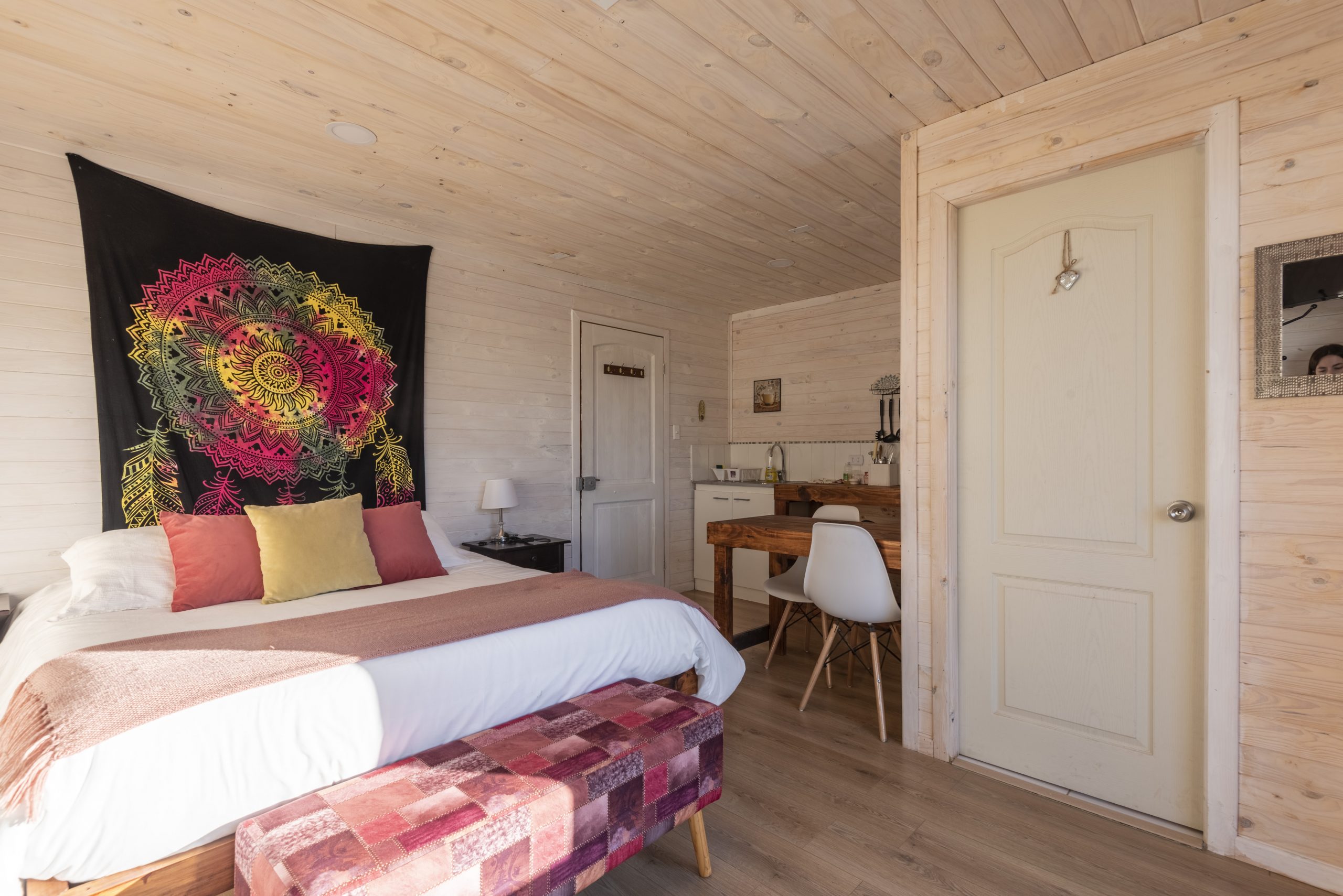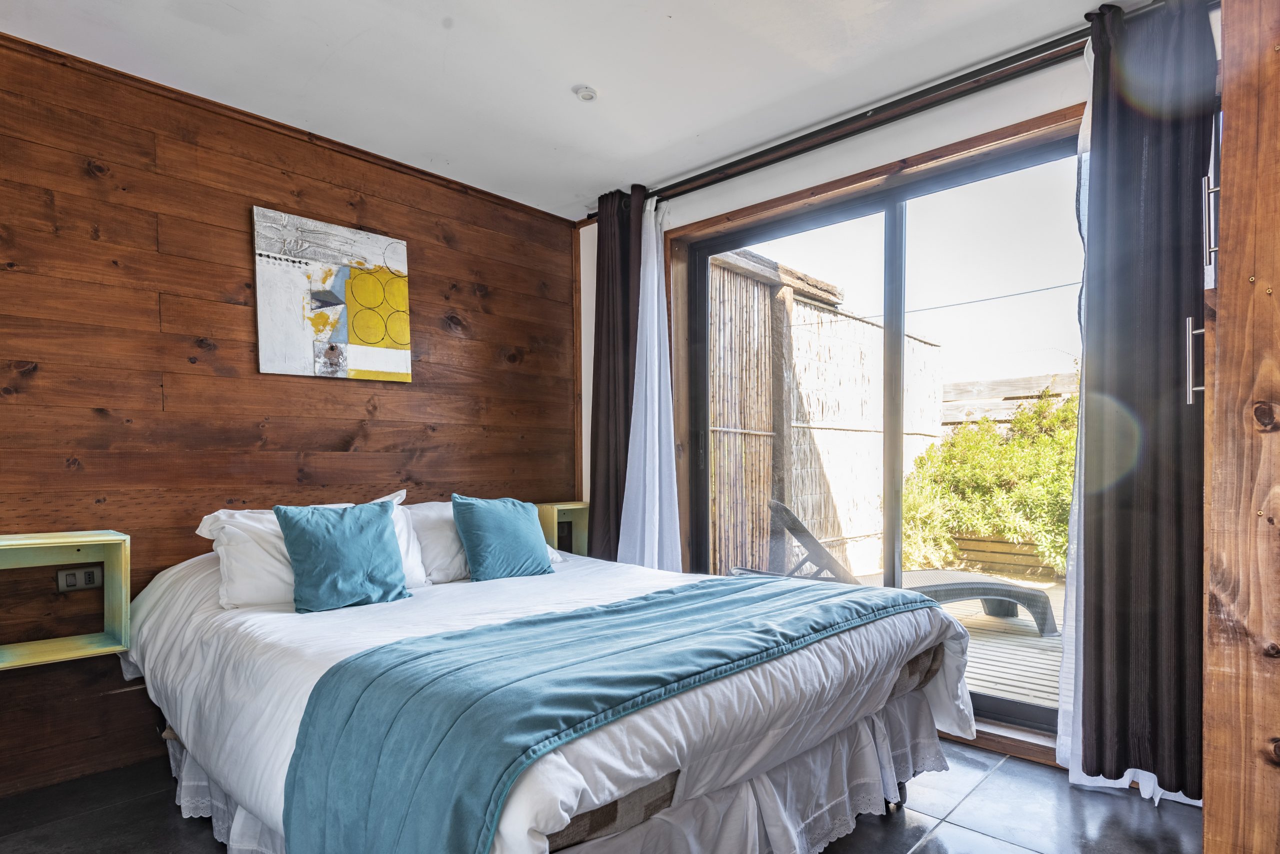 Apartamento para dos personas ubicada en el segundo piso, cuenta con una cama matrimonial, TV de pantalla plana, baño en suite (privado), TV cable, Wifi, kitchenette, utensilios de cocina para dos personas y frigobar. Cuenta con una terraza techada y calefacción (bosca o estufa a gas) donde puedes disfrutar de los atardeceres mágicos de Pichilemu.